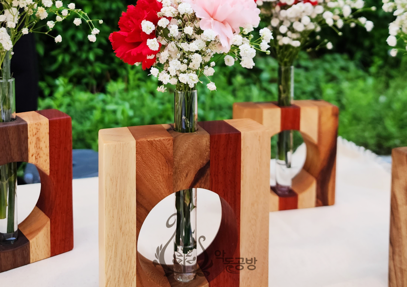 원목 집성 유리관 화병